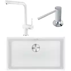 Franke Maris MRG 110-72 Granit Evye + Active Plus Doccia 2.0 Armatür + Sıvı Sabunluk (Bianco)